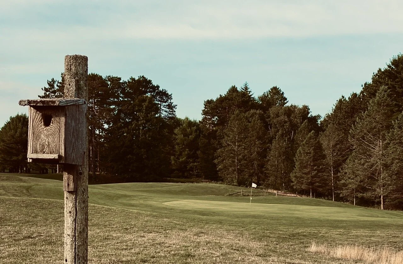 Birdhouses are used as 150y markers on each hole. Despite some of the greens appearing rather benign, most have teeth with unseen slopes and nasty undulations